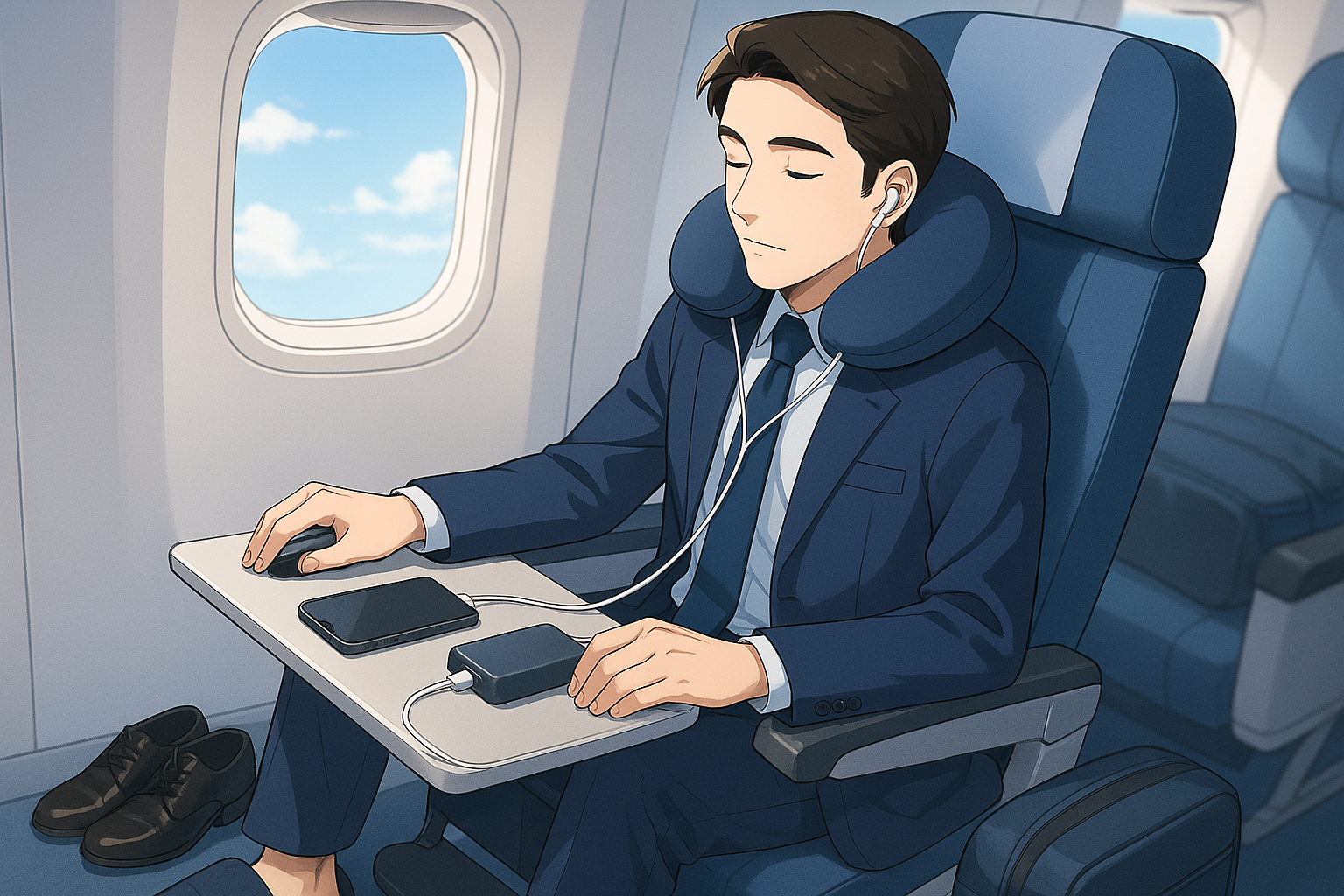 海外出張や国内の長距離移動でフライト時間が長いと、「首が痛い」「足がむくむ」「小物が迷子になる」「充電が不安」など、地味なストレスが積み上がりがちです。ここでは出張サラリーマンが“持っていて助かった”系を、厳選して5つ紹介します。