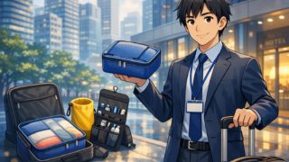 連泊出張で荷物が散らかる悩みを、圧縮トラベルポーチで解決。1日分セット化・清潔/使用済み分離・定位置化のコツと便利グッズを紹介。